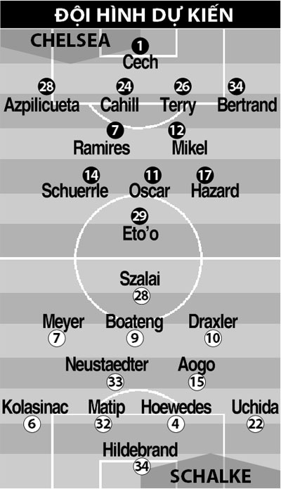 Cũng may cho Chelsea, cơ hội để họ trút hết bực bội đã tới. Schalke luôn là miếng mồi ngon dành cho The Blues bấy lâu nay. 3 lần đụng độ Chelsea, Schalke chưa thắng trận nào, thậm chí còn chưa ghi được bàn nào vào lưới đối thủ.